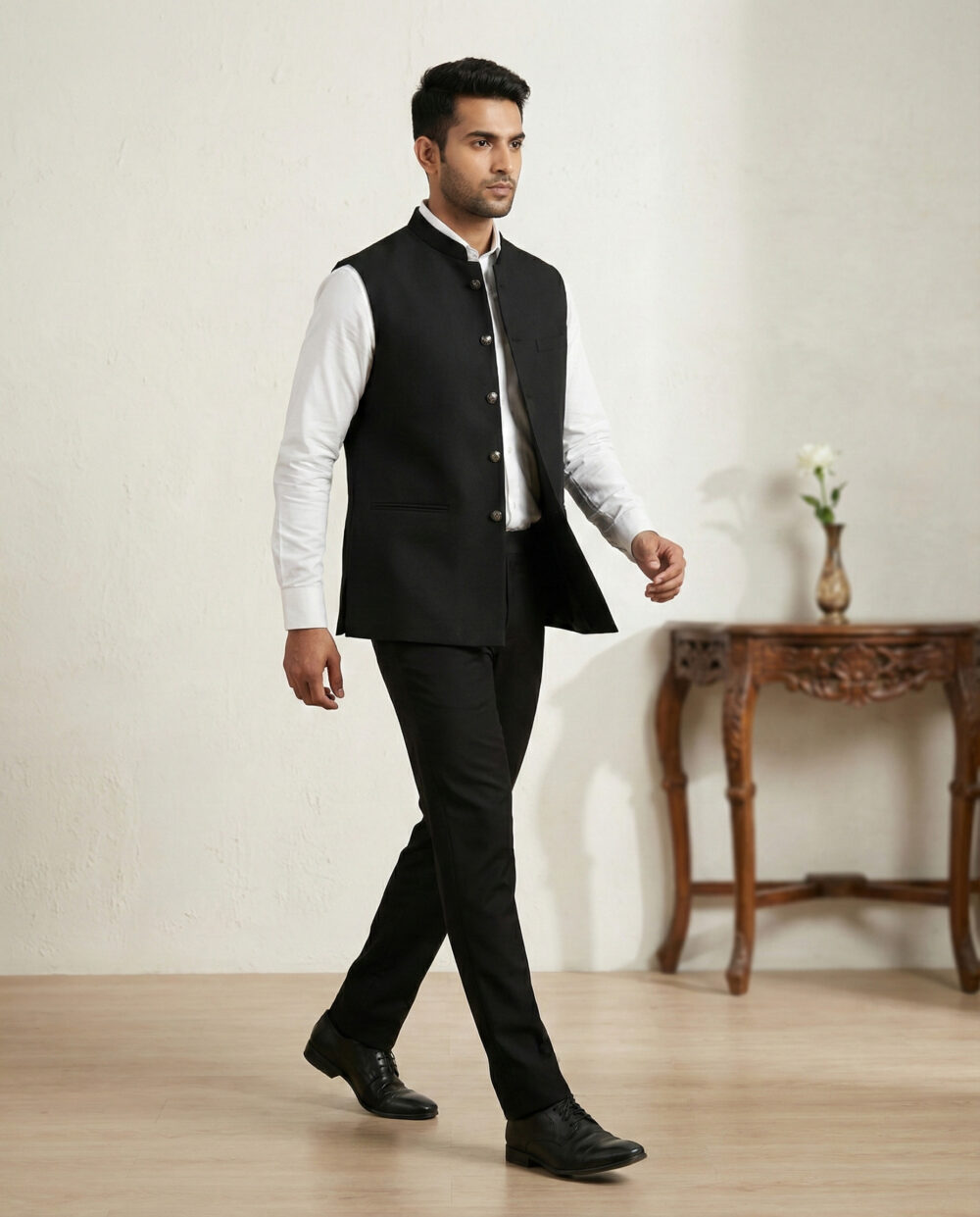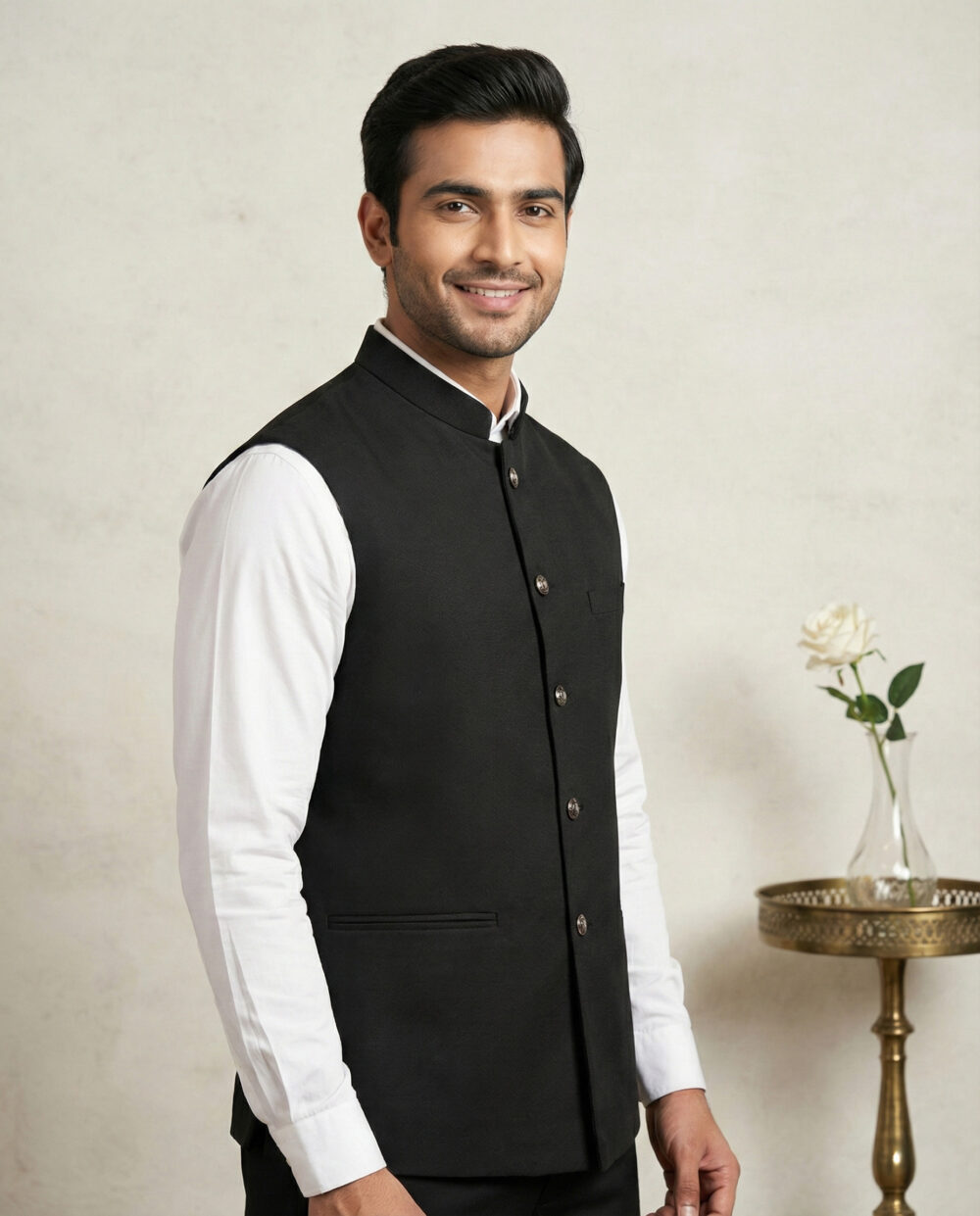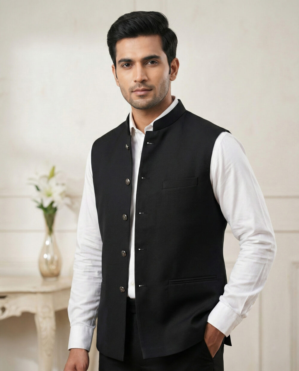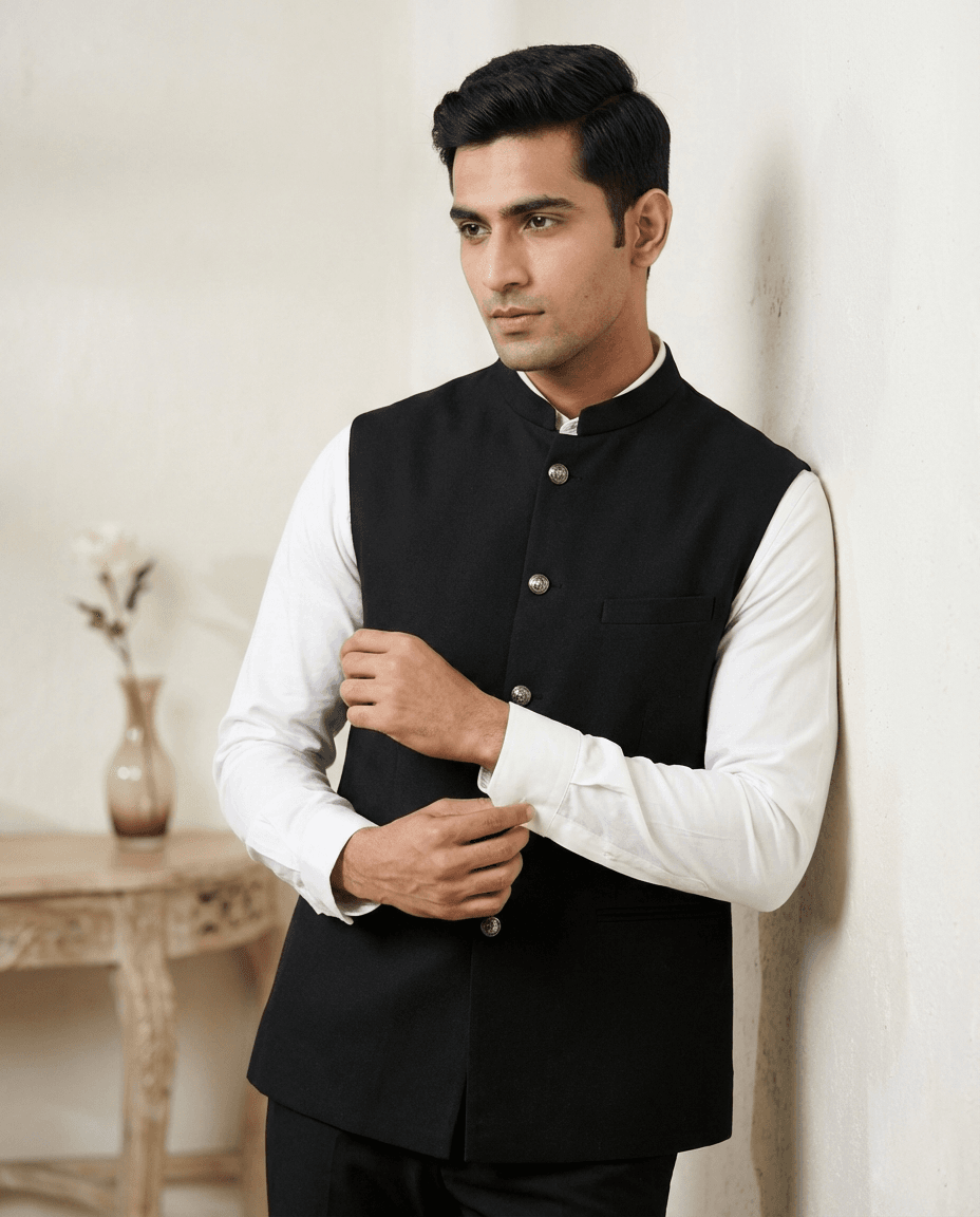 Make a commanding impression at the workplace with the M-BERLIN-COAT from Its Moment. Designed specifically for the modern professional, this Z Black Nehru Jacket combines authority with elegance.