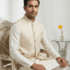 Bring a refreshing tropical vibe to your ethnic wardrobe with this Off-White Coconut Printed Waistcoat from Its Moment. Expertly crafted from high-quality Giza fabric, this jacket offers superior breathability and a luxurious texture, making it perfect for daytime events and summer celebrations.