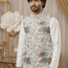 Despite its rich look, comfort is prioritized with a smooth satin lining and a comfortable regular fit. The superior construction includes all-over fusing, which keeps the collar standing tall and the chest smooth, preventing the fabric from sagging. It comes equipped with four functional pockets, providing ample space for your phone, keys, or wallet. Pair this ethnic masterpiece with a crisp white kurta pyjama set to complete your royal ensemble.